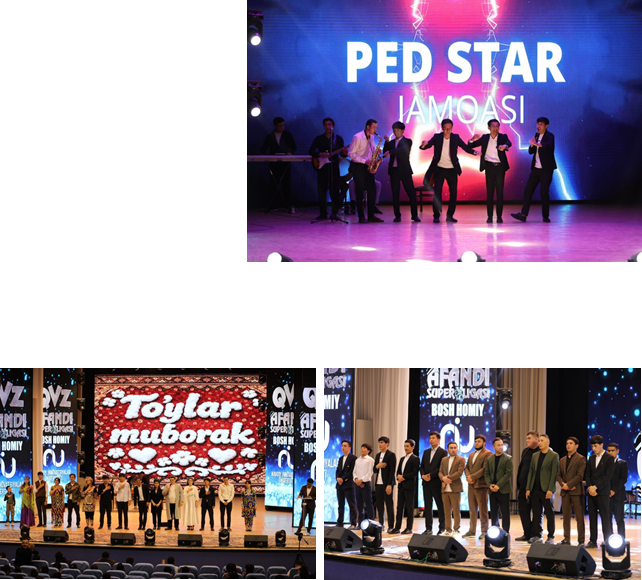 2026-yil 25-mart kuni Navoiy shahridagi “Farhod” madaniyat saroyida “Quvnoqlar va zukkolar” ko‘rik-tanlovining “Afandi Super Ligasi” yarim final bosqichi tashkil etildi. Unda “Iqtisodchi”, “Ped Star”, “Navoiylik bolalar” hamda “TBT” jamoalari o‘zaro bellashdi. Bahslar davomida jamoalar sahnaviy chiqishlari, hazil-mutoyibalari va ijodiy yondashuvlari bilan tomoshabinlarga yuqori kayfiyat ulashdi. Yakuniy natijalarga ko‘ra, Navoiy davlat universitetining “Ped Star” jamoasi final bosqichiga yo‘llanmani qo‘lga kiritdi. O‘tkazilgan bellashuvlar universitetning ijtimoiy tarmoqlarida yoritildi https://t.me/NavDU_YI/39430