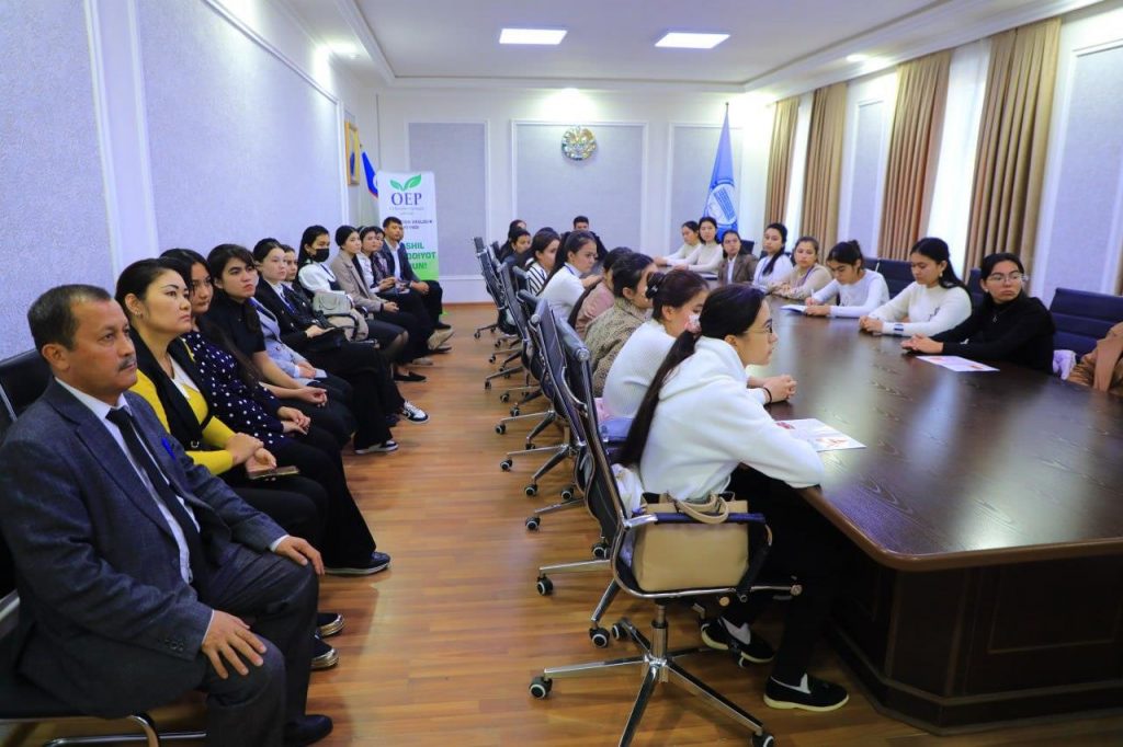 Following the announcement of Presidential Decree PF-61, the university organized small informative sessions and awareness meetings for the nearby community. These sessions explained the main ideas of the decree, including the promotion of environmental protection, green initiatives, renewable energy use, youth-led ecological projects, and opportunities related to the ‘Yashil tashabbuslar’ (Green Initiatives) Fund. The outreach aimed to increase environmental awareness, support youth ecological activities, and encourage community participation in sustainable practices.